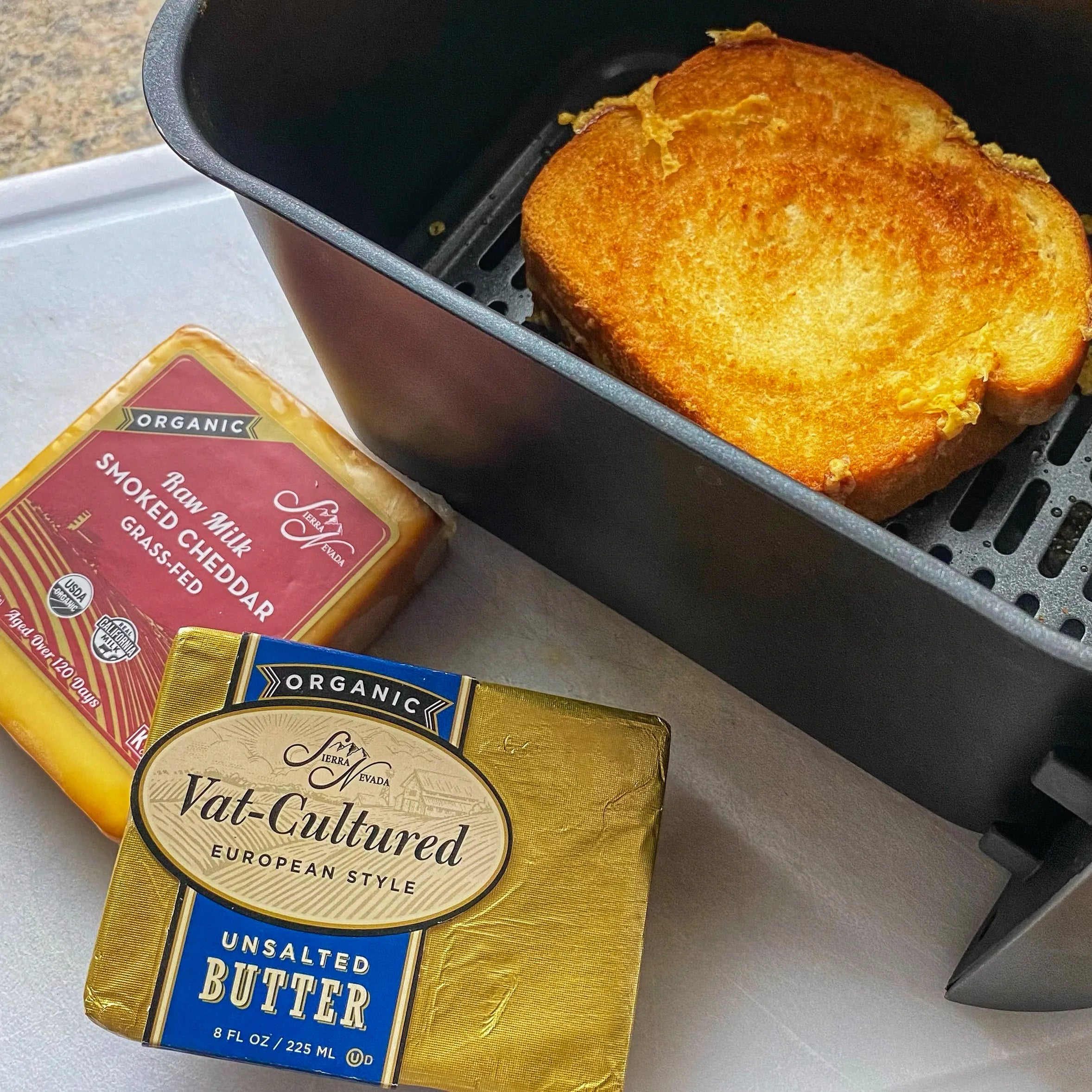 Air Fryer Grilled Cheese is a quick, crispy twist on the classic comfort food, made with buttery bread and melty Organic Raw Milk Smoked Cheddar. Using our Euro-Style Cultured Butter ensures a rich, golden crust—perfectly crisp outside and gooey inside in under 10 minutes.