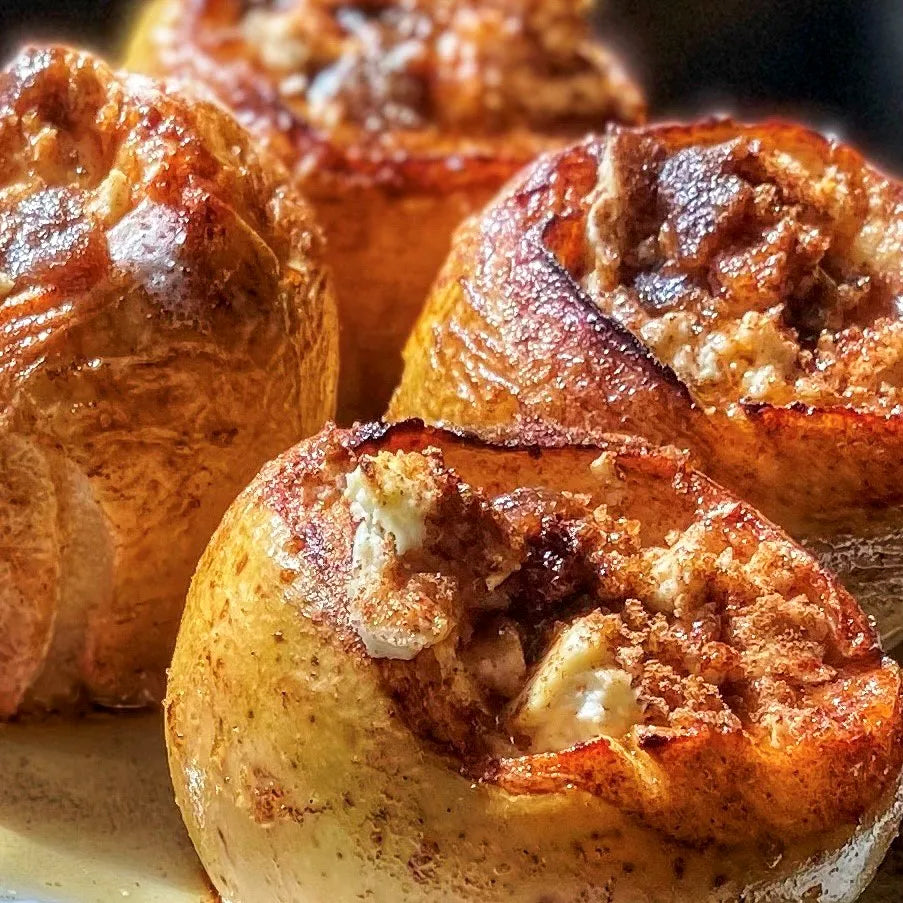 Baked Spiced Apples with Farmer Cheese are a cozy, wholesome treat filled with warm cinnamon, brown sugar, and our creamy Gina Marie Farmer Cheese. Finished with a touch of salt and buttery glaze, they make a naturally sweet and satisfying dessert or snack.