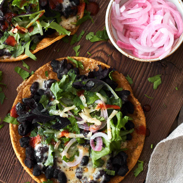 Black Bean Tostadas with Organic Baby Bella Mushroom Jack