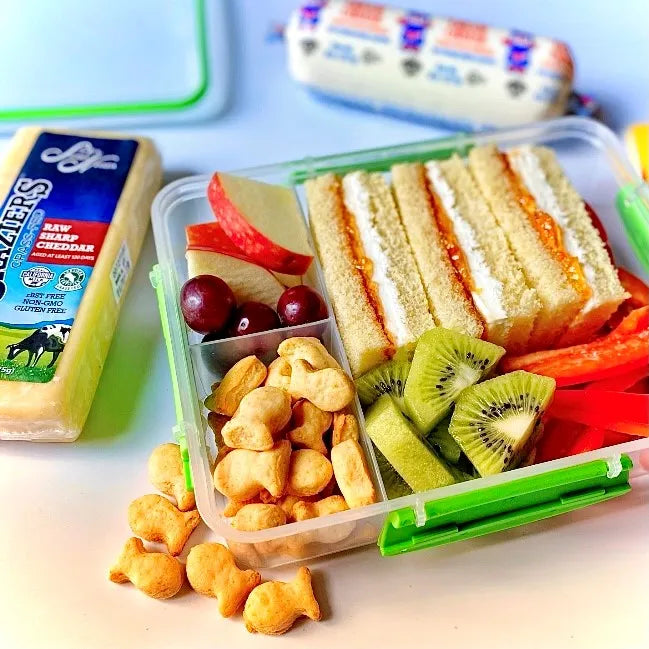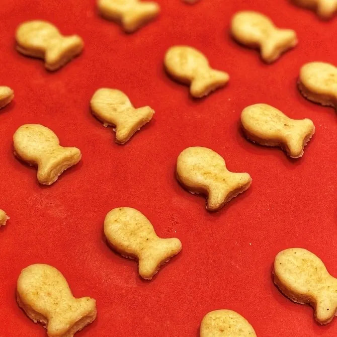 Homemade Cheddar Goldfish are a cheesy, buttery snack made with Graziers Raw Milk Sharp Cheddar and a blend of simple pantry staples. Perfect for lunchboxes or grazing boards, they pair especially well with a classic cream cheese and jelly sandwich made with creamy Gina Marie Cream Cheese.