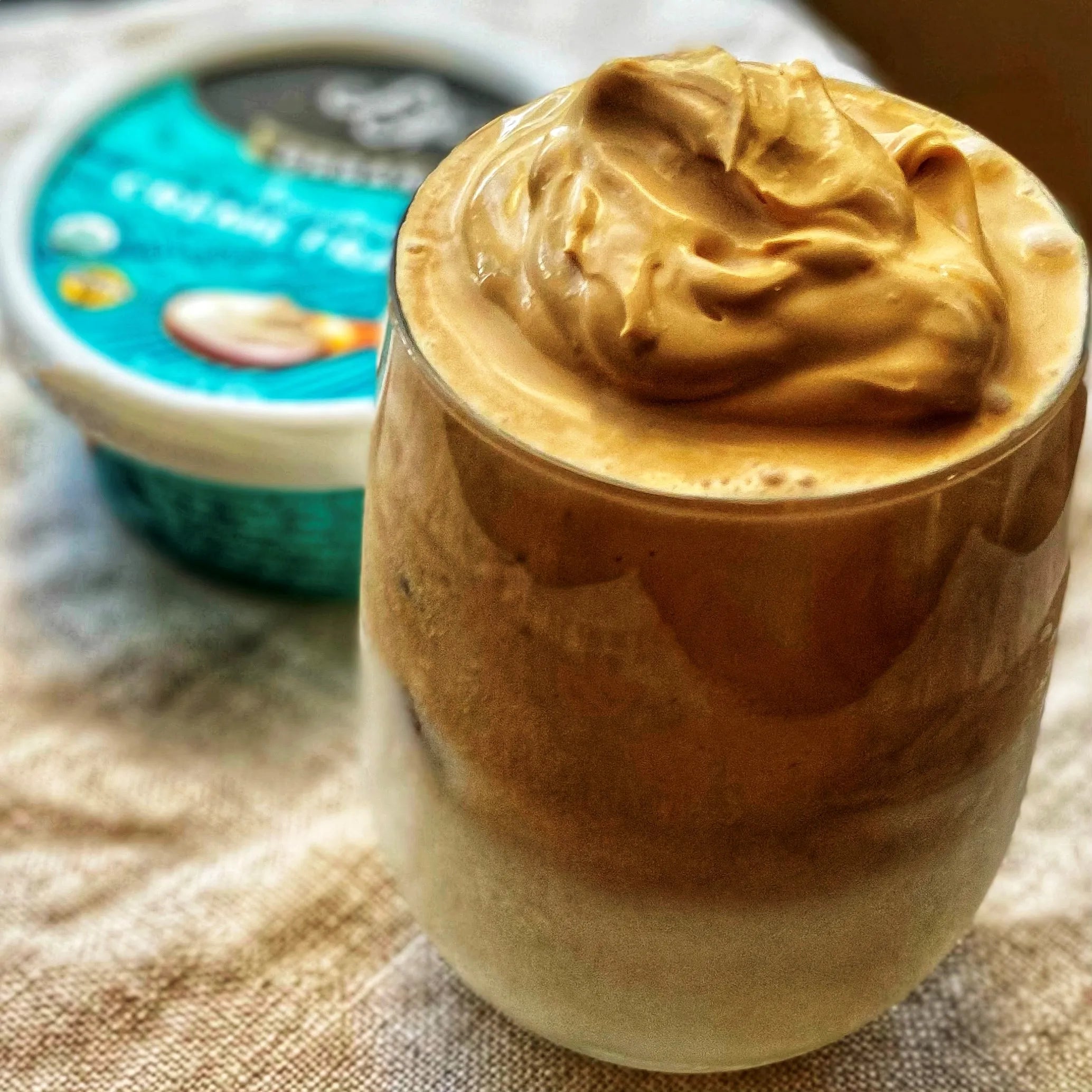 Irish Cream Dalgona Coffee is a creamy, whipped twist on the classic with bold coffee flavor, a splash of Irish cream, and rich Sierra Nevada Organic Crème Fraîche. Spooned over chilled milk and ice, it’s a refreshing pick-me-up with a decadent, frothy finish.