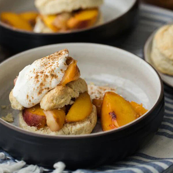 Peach and Crème Kefir Shortcake is a fresh spin on a classic dessert, made with tender maple-sweetened biscuits and layered with roasted peaches and tangy Crème Kefir. Light, creamy, and just the right balance of sweet and tart, it’s a seasonal favorite that showcases real, simple ingredients.