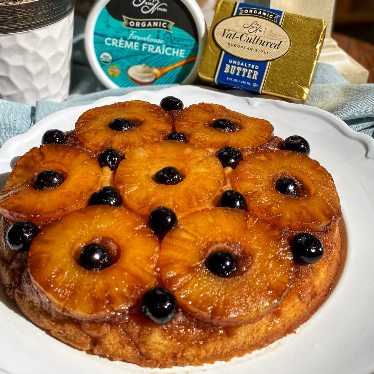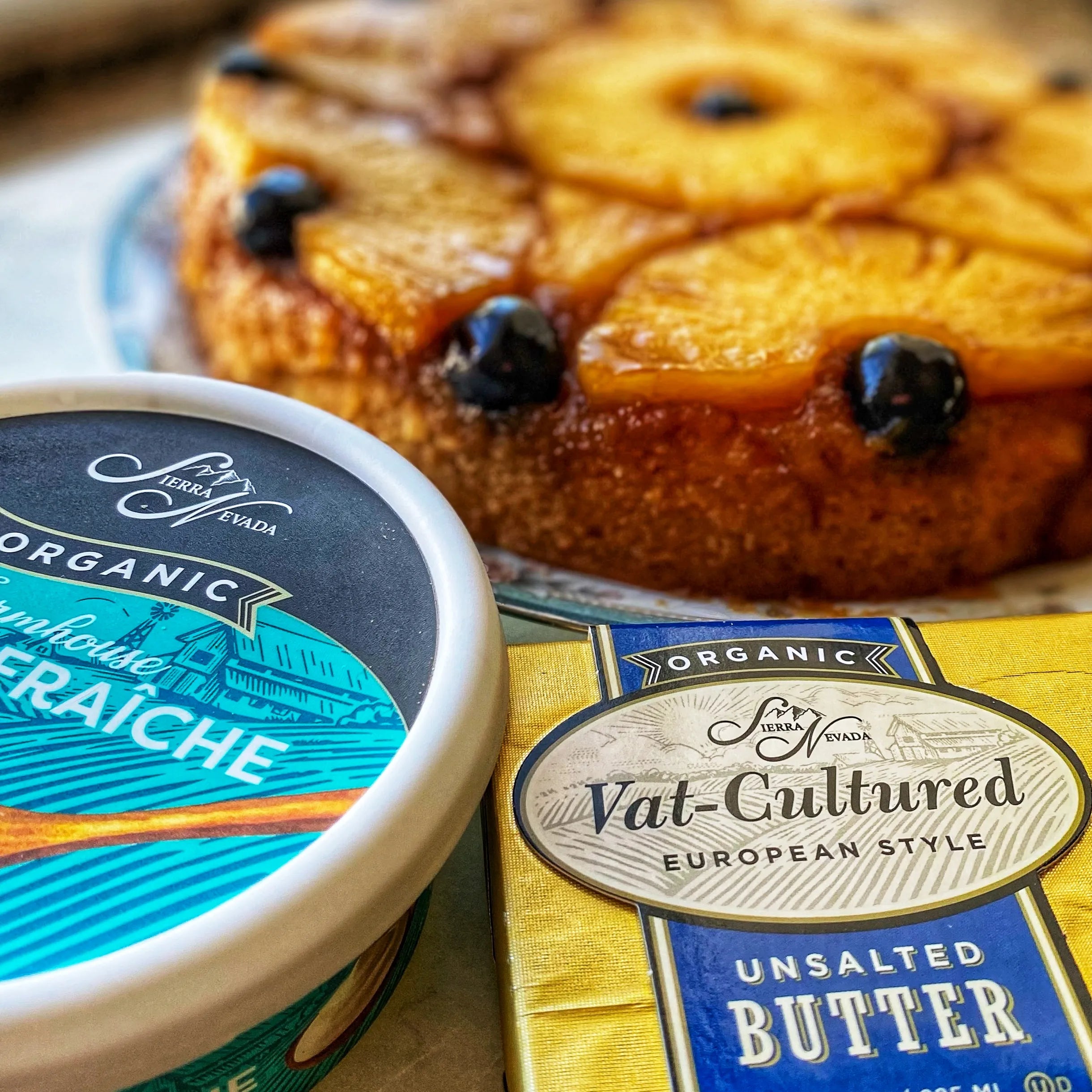 Pineapple Upside Down Cake gets a rich and tangy twist with Sierra Nevada Organic Crème Fraiche and our Cultured Euro-Style Butter. Topped with caramelized pineapple and cherries, this moist, golden cake is a nostalgic favorite made even better with real, wholesome ingredients.