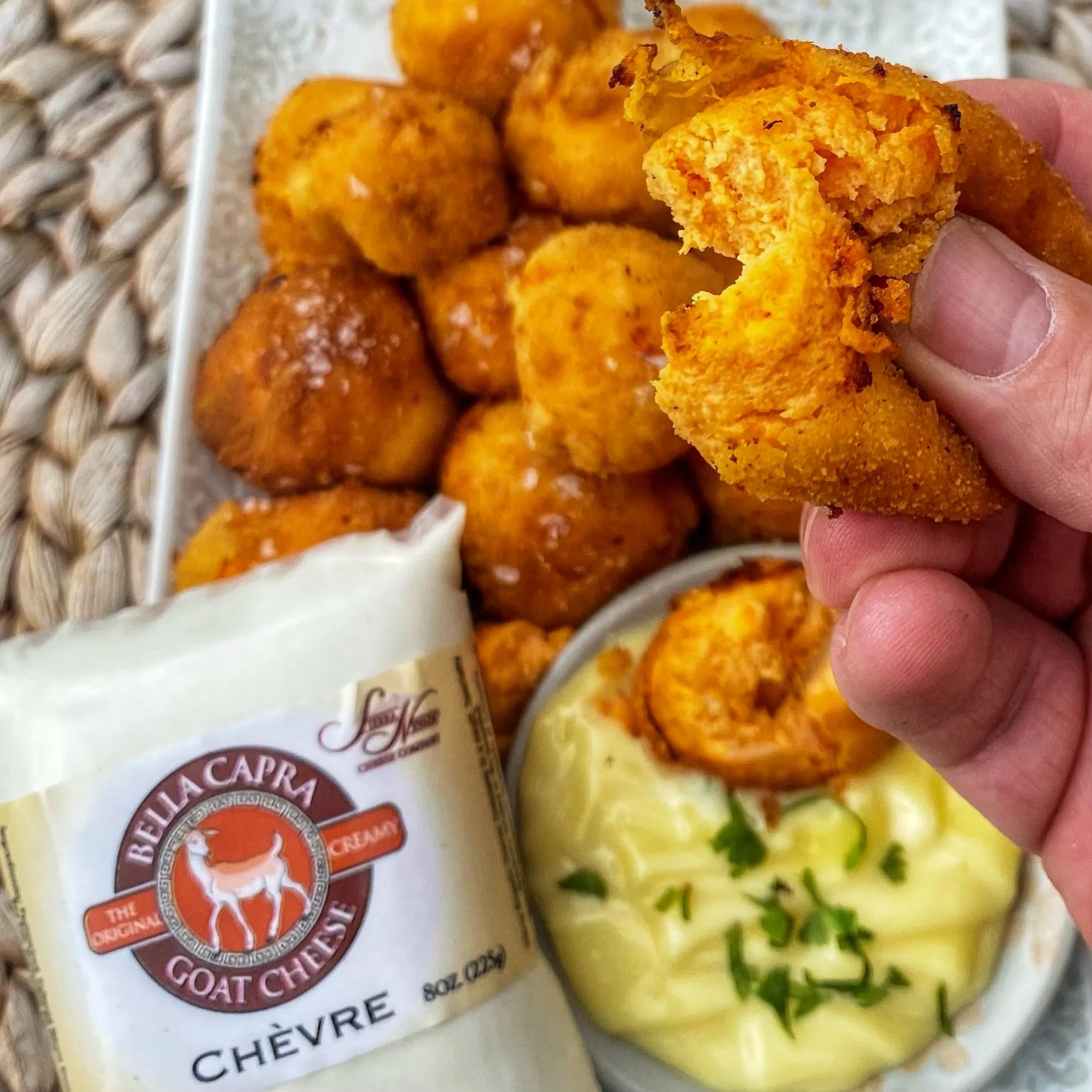 Crispy, golden croquettes made with creamy chèvre and sweet potato, seasoned with warm spices and served with a zesty garlic aioli. A savory bite-size appetizer with a perfectly creamy center and crunchy exterior.