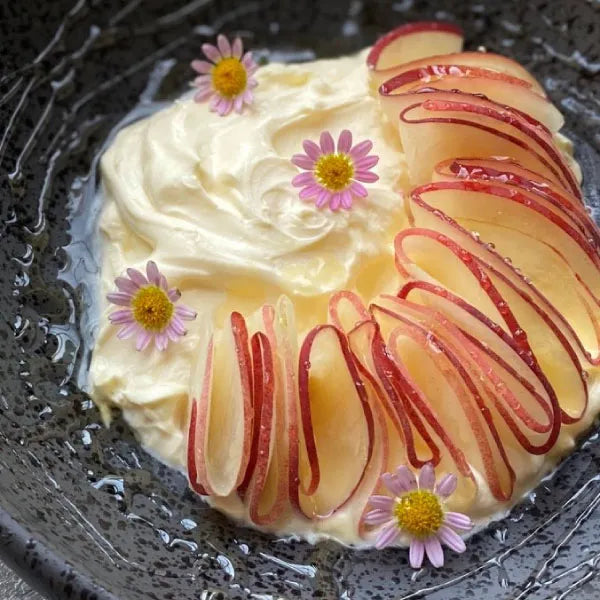White Peaches with Moscato-Infused Crème Fraîche is a delicate, refreshing treat that pairs thinly sliced peaches with lightly sweetened Farmhouse Organic Crème Fraîche. A splash of chilled moscato adds a bubbly, floral note—perfect for summer entertaining or an elegant dessert.