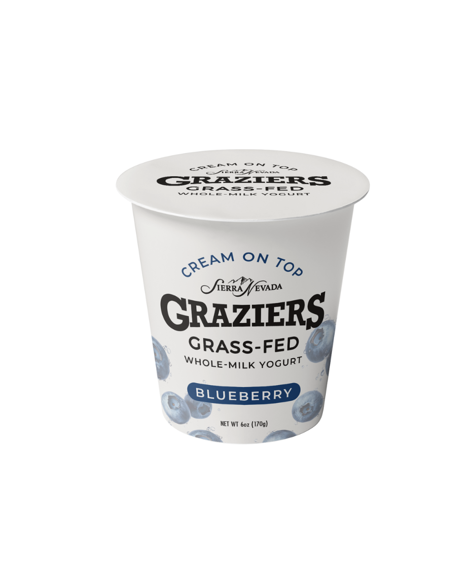 Graziers Grass-Fed Whole Milk, Blueberry Fruit Blend (Water, Sugar, Blueberries, Pectin, Natural Flavor, Fruit and Vegetable Juice for Color [Blueberry, Carrot], Citric Acid). Live Active Cultures: L. bulgaricus, S. thermophilus, L. acidophilus, L. casei, and Bifidobacterium. Cultured after pasteurization Contains Milk.